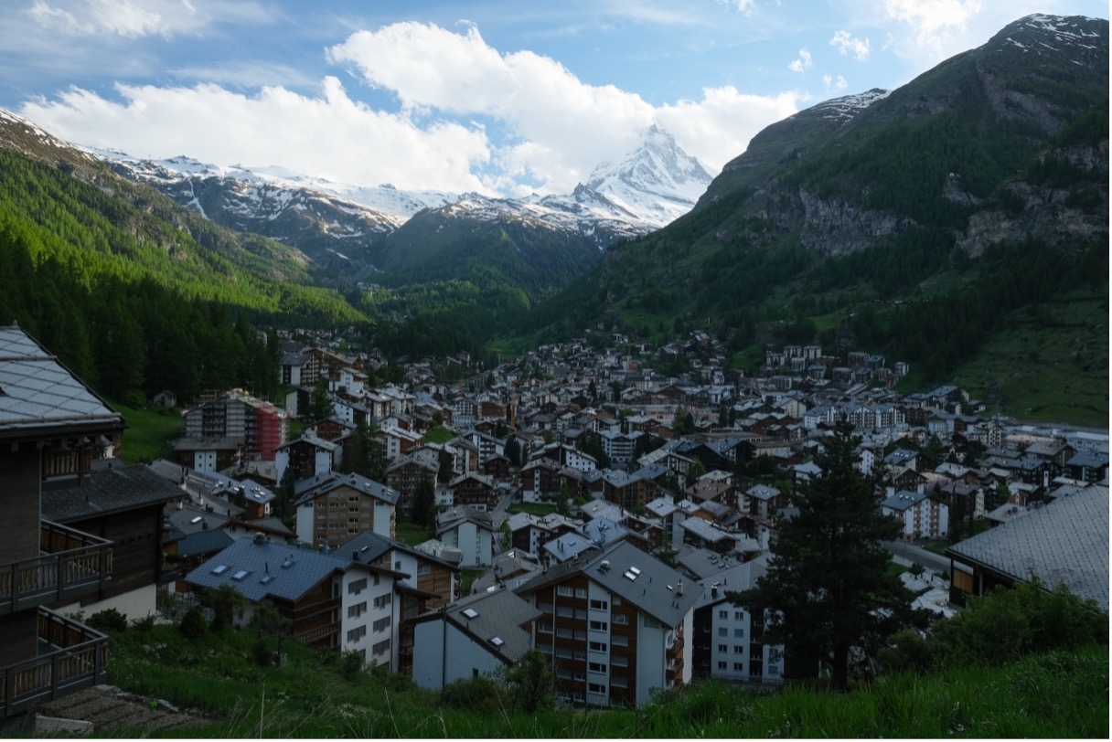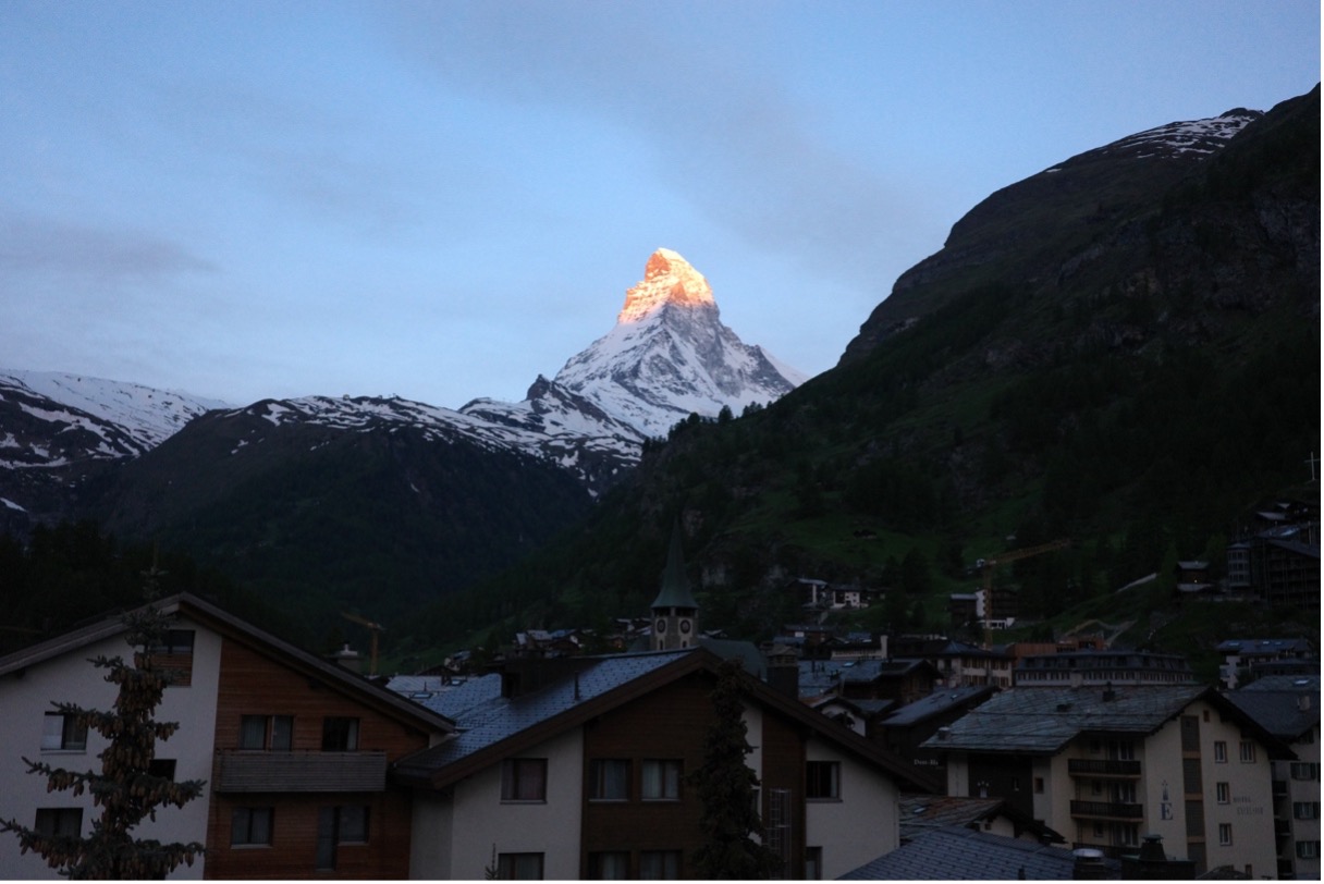 마테호른을 보기 위하여 반드시 들러야 하는 곳이 바로 체르마트인데, 환경을 위해 내연기관차의 출입을 금지한 이 아늑한 천연 마을 자체의 매력도 분명 있겠지만, 저는 산봉우리계의 연예인, 마테호른이 체르마트 여행의 99.9%라고 생각합니다. 그래서 체르마트의 숙소는 무조건 마테호른 뷰의 방으로 예약을 해야 합니다. 그래야 숙소에 가만히 누워만 있어도 체르마트 여행의 목적을 달성할 수 있고, 새벽에 황금호른을 보기도 훨씬 유리하죠.
