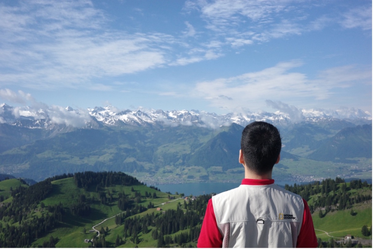 흐름상 담지 못했던 이야기를 하나 말씀드리면서 마무리하겠습니다. 산의 여왕으로 불리는 리기산에 가던 날, 스위스 국기 색에 맞춰 일행하고 같이 빨간 반팔에 하얀 조끼를 입었습니다. 그랬더니 정상에 오르던 기차 안에서 필리핀계 미국인 가족분들이 저희를 보고 정말 편견 없이 스위스 사람이냐고 묻더군요. 아니라고 했더니 제 조끼를 보고 내셔널지오그래픽 사람이냐고 다시 묻길래, 웃으면서 그냥 한국인 관광객이라고 했죠. 그랬더니 그분들은 한국 드라마 <사랑의 불시착>을 보고 스위스를 방문하게 됐다고 하면서, 같이 기념사진을 찍자는 요청을 받게 되었습니다. 글로 쓰고 나니 그다지 재미없는 것 같지만, 아래 사진을 보고 상상하면서 살짝 웃음이 나오셨기를 기대해 봅니다.