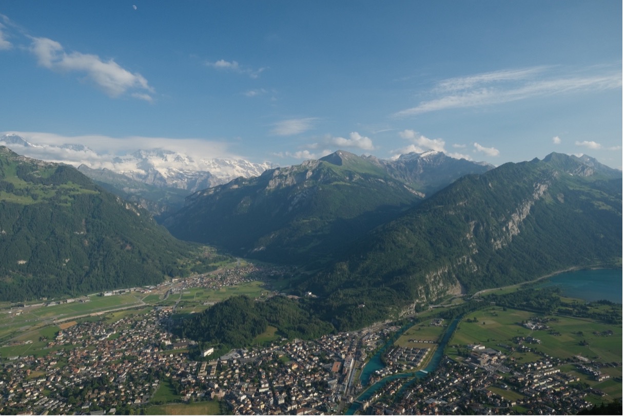 스위스에 길게 머물지 못한다면, 혹은 한 곳에만 머물고 싶다면, 100명 중 99명은 인터라켄을 거점으로 꼽지 않을까 싶습니다. 인터라켄은 수도인 베른과 알프스의 이데아라고 할 수 있는 그린델발트, 유럽의 지붕으로 불리는 융프라우 등을 포함한 베르너 오버란트 지역의 중심지이며, 스위스 전체의 교통 요지이기도 하죠. 대신 그만큼 사람이 북적거리고 숙소 가격도 비싸서 요즘은 그 주변 지역들에 많이 머무는 것 같습니다.